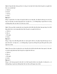 Câu 4. Công dân được tham gia bầu cử và ứng cử vào Quốc hội là thực hiện tốt quyền con người trên