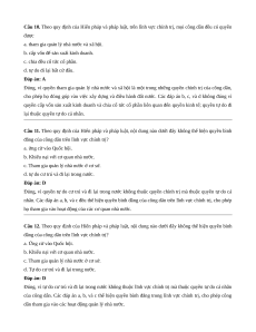 Câu 11. Theo quy định của Hiến pháp và pháp luật, nội dung nào dưới đây không thể hiện quyền bình