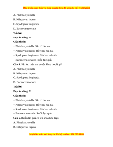 Câu 4. Sâu keo màu thu có tên khoa h c l ọ à gì? A. Plutella xylostella B. Nilaparvata lugens C. Spodoptera frugiperda D. Bactrocera dorsalis Trả l i ờ Đáp án đúng: C Giải thích:
