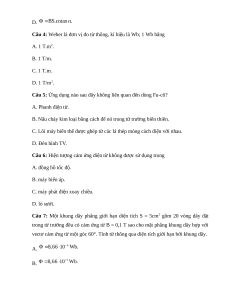 Câu 4: Weber là đơn vị đo từ thông, kí hiệu là Wb; 1 Wb bằng A. 1 T.m2. B. 1 T/m. C. 1 T.m. D. 1 T/m2.