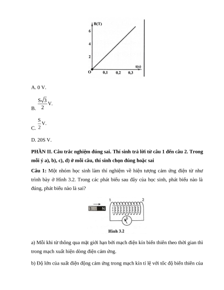 bên, độ lớn suất điện động cảm ứng bằng A. 0 V. B. C. D. 20S V.