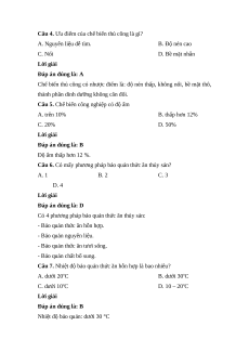 Câu 6. Có mấy phương pháp bảo quản thức ăn thủy sản? A. 1 B. 2 C. 3 D. 4 Lời giải Đáp án đúng là: D
