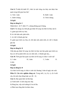 Câu 8. Ở nhiệt độ dưới 0oC, thức ăn tươi sống của thủy sản được bảo