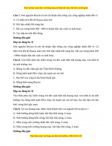 Câu 7. Sơn nguyên Braxin là nơi rất thuận tiện trồng cây công nghiệp nhiệt đới vì: