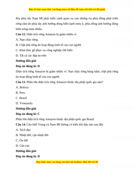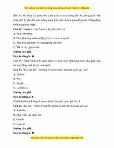 Câu 13. Phần lớn diện tích rừng Amazon thuộc địa phận quốc gia nào?