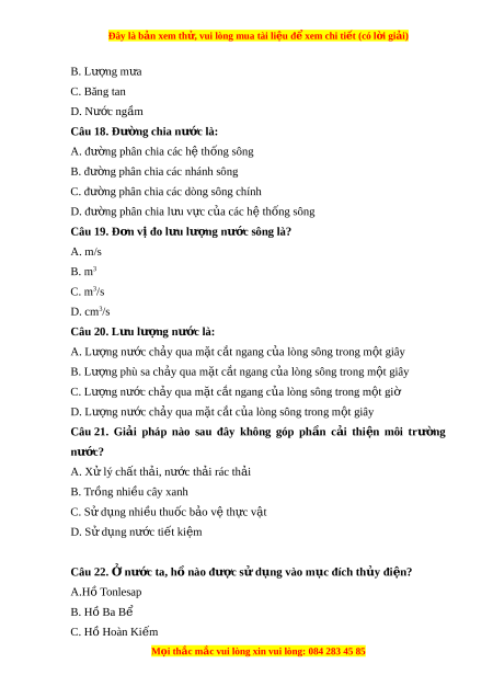 Đây là bản xem th , vu ử i lòng mua tài li u ệ đ xe ể m chi ti t ế (có l i ờ gi i ả ) B. Lư ng m ợ a ư C. Băng tan D. Nư c ng ớ ầm Câu 18. Đư ng chi ờ a nư c ớ là: A. đư ng phân chi ờ a các h t ệ hống sông B. đư ng