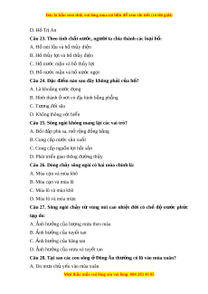 ấ không có dòng ch y s ả ông ngòi? A. Vùng ôn đ i ớ B.Trên các đ o ả C. Trên các sa m c ạ D. Vùng c n c ậ c ự Câu 16. Mùa lũ c a m ủ t ộ con sông là: A. Tháng có lư ng m ợ a ư l n nh ớ t ấ B. Tháng có l u l ư ư ng n ợ ư c ớ sông l n nh ớ t ấ C. Các tháng có l u l ư ư ng ợ nư c l ớ n h ớ n ơ 1000m3/s D. Các tháng có l u l ư ư ng n ợ ư c ớ l n h ớ n m ơ c t ứ rung bình năm. Câu 17. Giả sử m t