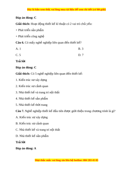 Đây là bản xem th , vu ử i lòng mua tài li u ệ đ xe ể m chi ti t (c ế ó l i ờ gi i ả ) Đáp án đúng: C Giải thích: Ho t ạ đ ng ộ thi t ế kế kĩ thu t ậ có 2 vai trò ch y ủ u: ế + Phát tri n s ể n ả ph m ẩ + Phát tri n công ngh ể ệ