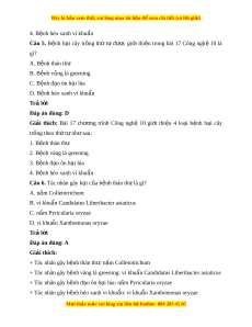 Câu 9. Tác nhân gây h i ạ c a b ủ ệnh héo xanh vi khu n l ẩ à gì? A. nấm Colletotrichum B. vi khu n C ẩ
