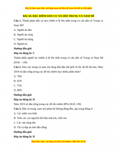 BÀI 18: ĐẶC ĐIỂM DÂN CƯ XÃ HỘI TRUNG VÀ NAM MĨ