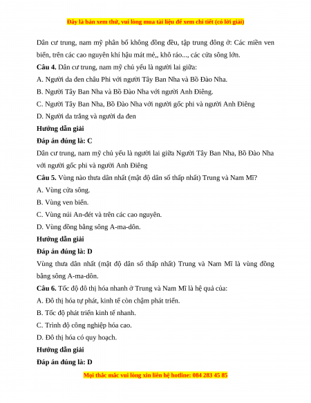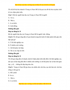 Câu 4. Dân cư trung, nam mỹ chủ yếu là người lai giữa: