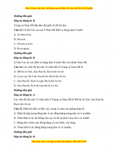 Câu 3. Dân cư trung, nam mỹ phân bố không đồng đều, tập trung đông ở: A. Các miền ven biển