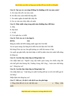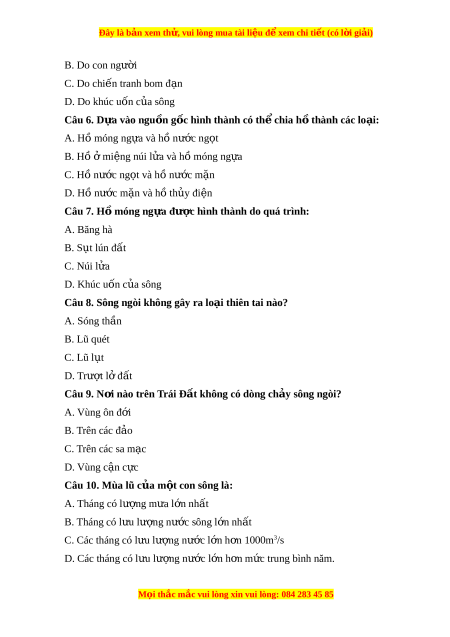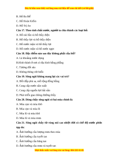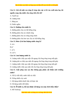ấ không có dòng ch y s ả ông ngòi? A. Vùng ôn đ i ớ B. Trên các đ o ả C. Trên các sa m c ạ D. Vùng c n c ậ c ự Câu 10. Mùa lũ c a m ủ t ộ con sông là: A. Tháng có lư ng m ợ a ư l n nh ớ t ấ B. Tháng có l u l ư ư ng n ợ ư c ớ sông l n nh ớ t ấ C. Các tháng có l u l ư ư ng ợ nư c l ớ n h ớ n ơ 1000m3/s D. Các tháng có l u l ư ư ng n ợ ư c ớ l n h ớ n m ơ c t ứ rung bình năm. M i