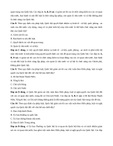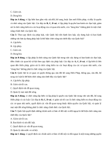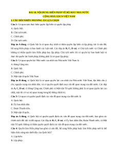 Câu 1: Cơ quan nào thực hiện quyền lập hiến và quyền lập pháp A. Quốc Hội. B. Chủ tịch nước. C. Chính phủ. D. Chủ tịch nước.