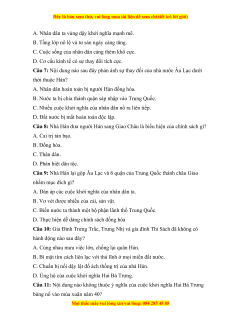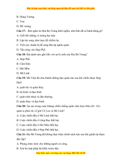 Câu 16: Sau khi đánh đuổi được quân đô hộ, Trưng Trắc được suy tôn làm vua và xưng là A. Trưng Vương