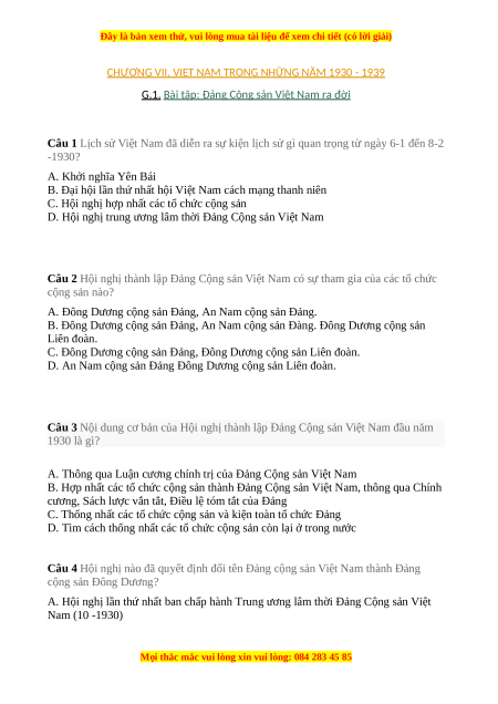 CHƯƠNG VII. VIỆT NAM TRONG NHỮNG NĂM 1930 - 1939 G.1.