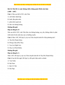 Câu 1.Nửa sau thế kỉ XIV, nhà Trần