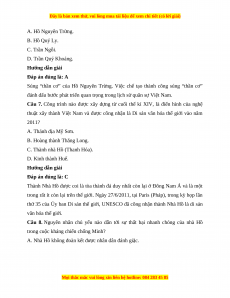 C. Thành nhà Hồ (Thanh Hóa). D. Kinh thành Huế. Hướng dẫn giải Đáp án đúng là: C