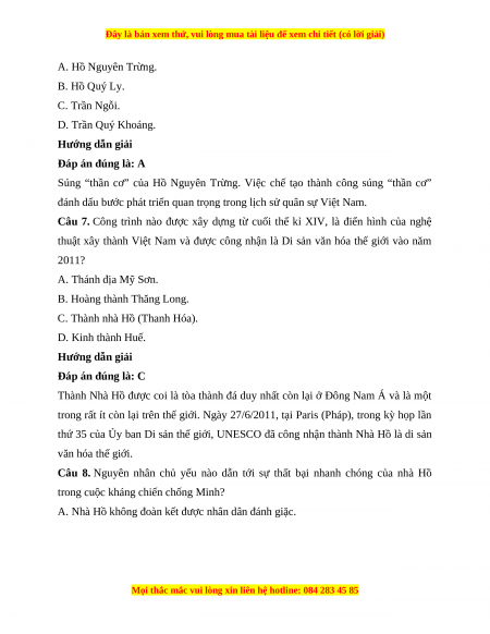 Câu 8.Nguyên nhân chủ yếu nào dẫn tới sự thất bại nhanh chóng của nhà Hồ