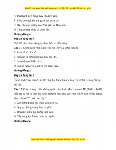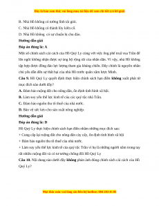 Câu 10. Nội dung nào dưới đây không phản ánh đúng chính sách cải cách của Hồ