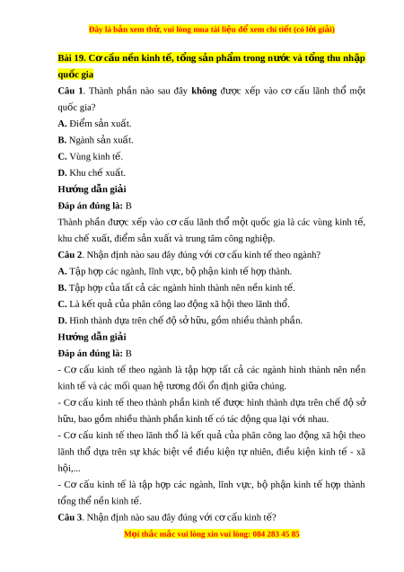 Đây là bản xem th , vu ử i lòng mua tài li u ệ đ xe ể m chi ti t ế (có l i ờ gi i ả ) Bài 19. Cơ c u ấ n n ề kinh t , ế t ng ổ s n ả ph m ẩ trong nư c ớ và t ng ổ thu nh p ậ quốc gia Câu 1. Thành ph n