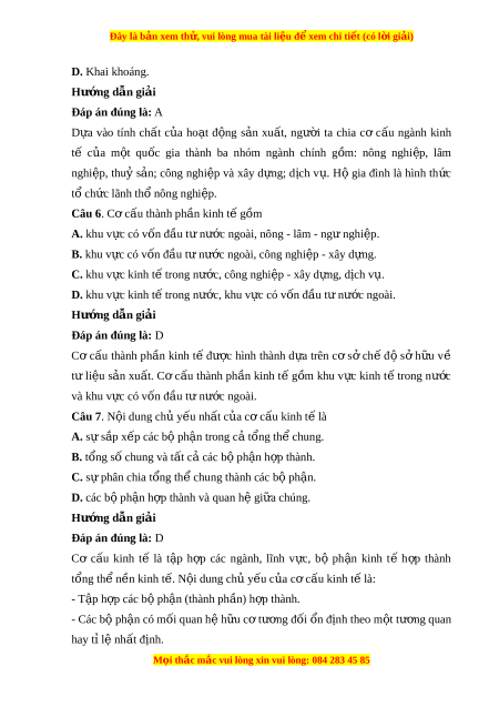 Đây là bản xem th , vu ử i lòng mua tài li u ệ đ xe ể m chi ti t ế (có l i ờ gi i ả ) D. Khai khoáng. Hư ng ớ d n gi ẫ i ả Đáp án đúng là: A D a ự vào tính ch t ấ c a ủ ho t ạ đ ng ộ s n ả xu t ấ , ngư i ờ ta chia cơ c u ấ ngành kinh tế c a ủ m t ộ qu c