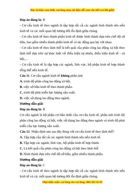 Đây là bản xem th , vu ử i lòng mua tài li u ệ đ xe ể m chi ti t (c ế ó l i ờ gi i ả ) A. Là k t ế quả c a phân công l ủ ao đ ng ộ xã h i ộ theo lãnh th . ổ B. Hình thành d a t ự rên ch đ ế s ộ h ở u, g ữ m ồ nhi u t ề hành ph n. ầ C. T p h ậ p ợ các ngành, lĩnh v c, b ự ộ ph n ki ậ nh t h ế p t ợ hành. D. T p h ậ p ợ c a