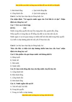 Câu 7. Tích vào ô thích h p ợ ĐÚNG SAI Nư c t ớ rong th y quy ủ n t ể n t ồ i ạ ba ở tr ng ạ thái: r n, ắ quánh d o, l ẻ ng ỏ Th y quy ủ n ể có trong l p các ớ l h ỗ ng c ổ a ủ đ t ấ và các khe n t ứ c a ủ đá Nư c ng ớ t