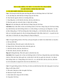 Câu 1: Nội dung nào dưới đây phản ánh đúng đặc điểm của hệ thống chính trị ở Việt Nam?