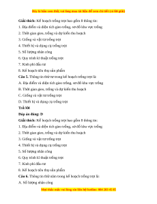 ọ bao gồm mấy thông tin? A. 5 B. 6 C. 7 D. 8 Trả l i ờ Đáp án đúng: D Giải thích: K ho ế ch ạ trồng tr t ọ bao gồm 8 thông tin: 1. Địa đi m