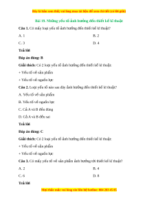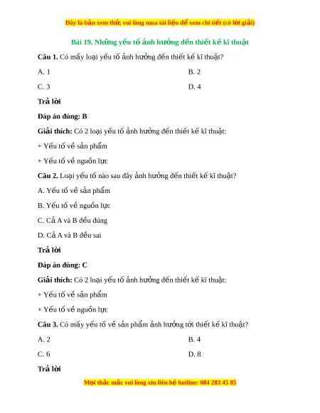Đây là bản xem th , vu ử i lòng mua tài li u ệ đ xe ể m chi ti t (c ế ó l i ờ gi i ả ) Bài 19. Nh ng y ữ u t ế ố n ả h hư ng đ ở n t ế hi t ế k kĩ ế thu t ậ Câu 1. Có mấy lo i ạ y u t ế ố nh ả hư ng đ ở n ế thi t ế k kĩ ế thu t ậ ? A. 1 B. 2 C. 3 D. 4 Trả l i ờ Đáp án đúng: B