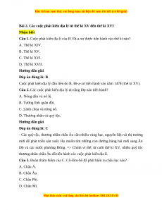 Câu 1.Cuộc phát kiến địa lí của B. Đi-a-xơ được tiến hành vào thế kỉ nào?