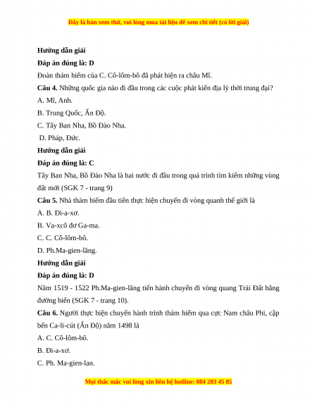 Câu 3. Đoàn thám hiểm của C. Cô-lôm-bô đã phát hiện ra châu lục nào? A. Châu Á. B. Châu Âu. C. Châu Phi. D. Châu Mĩ.