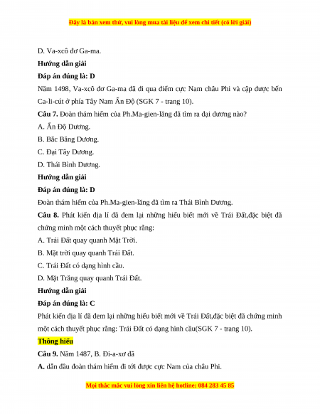 Câu 5. Nhà thám hiểm đầu tiên thực hiện chuyến đi vòng quanh thế giới là A. B. Đi-a-xơ. B. Va-xcô đơ Ga-ma. C. C. Cô-lôm-bô. D. Ph.Ma-gien-lăng. Hướng dẫn giải