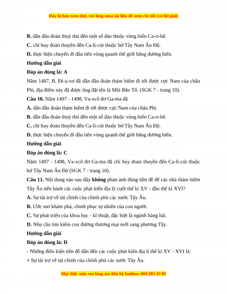 Câu 10.Năm 1497 - 1498, Va-xcô đơ Ga-ma đã