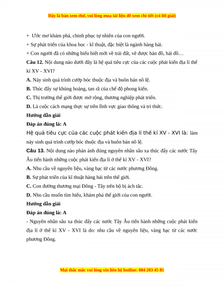 Câu 13. Nội dung nào phản ánh đúng nguyên nhân sâu xa thúc đẩy các nước Tây