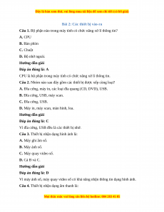 Trắc nghiệm Bài 2: Các thiết bị vào – ra