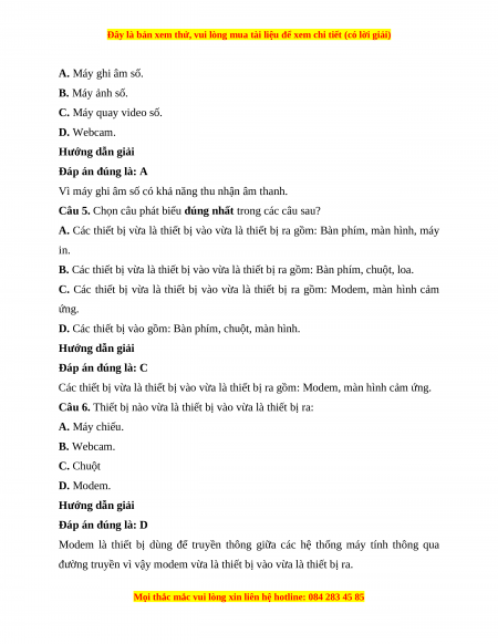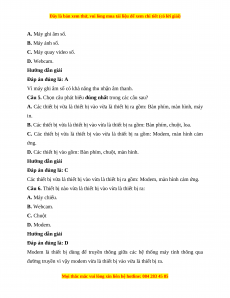 Câu 6. Thiết bị nào vừa là thiết bị vào vừa là thiết bị ra: A. Máy chiếu. B. Webcam. C. Chuột D. Modem. Hướng dẫn giải