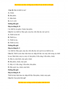 Câu 10. Đâu là thiết bị vào? A. Chuột. B. Bàn phím. C. Màn hình. D. Cả A và B Hướng dẫn giải