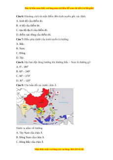 Đây là bản xem th , vu ử i lòng mua tài li u ệ đ xe ể m chi ti t ế (có l i ờ gi i ả ) Câu 6: Kho ng ả cách t m ừ t ộ đi m ể đ n ki ế nh tuy n g ế c ố xác đ nh ị A. kinh đ c ộ a đi ủ m ể đó. B. vĩ đ c ộ a ủ đi m ể đó. C. t a ọ đ đ ộ ịa lí c a đi ủ m ể đó. D. đi m ể c c đông c ự a ủ đi m ể đó.