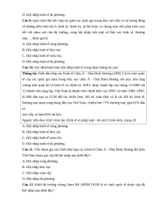 Câu 11. Việc tham gia vào Diễn đàn hợp tác Kinh tế Châu Á - Thái Bình Dương thể hiện