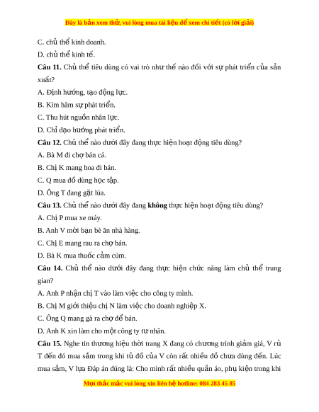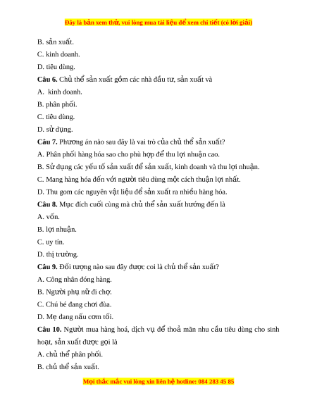 Đây là bản xem th , vu ử i lòng mua tài li u ệ đ xe ể m chi ti t (c ế ó l i ờ gi i ả ) B. s n ả xu t ấ . C. kinh doanh. D. tiêu dùng. Câu 6. Chủ th s ể n ả xu t ấ g m ồ các nhà đ u t ầ , s ư n ả xu t ấ và A. kinh doanh. B. phân ph i ố . C. tiêu dùng. D. s d ử ng. ụ Câu 7. Phư ng