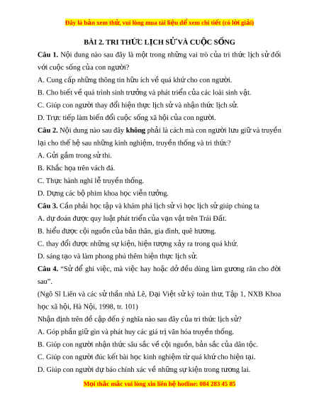 Đây là bản xem th , vu ử i lòng mua tài li u ệ đ xe ể m chi ti t (c ế ó l i ờ gi i ả ) BÀI 2. TRI TH C Ứ L C Ị H S Ử VÀ CU C Ộ S N Ố G Câu 1. N i