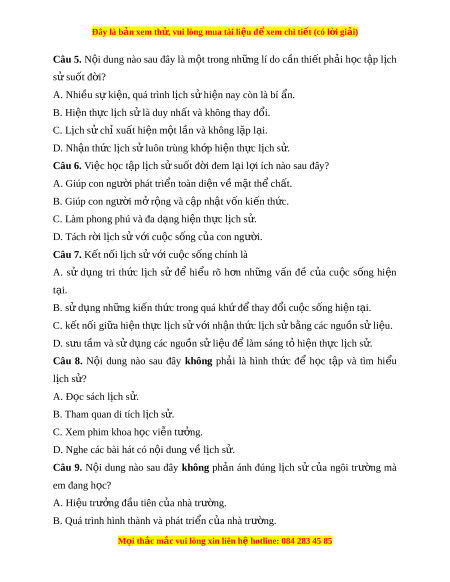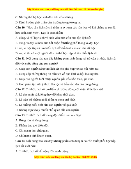 Đây là bản xem th , vu ử i lòng mua tài li u ệ đ xe ể m chi ti t (c ế ó l i ờ gi i ả ) C. Nh ng t ữ h h ế h ệ c s ọ inh đ u t ầ iên c a ủ trư ng. ờ D. Định hư ng ớ phát tri n c ể a ủ trư ng ờ trong tư ng ơ lai. Câu 10. “H c ọ t p ậ l ch ị sử chỉ di n ễ ra ở trong các l p ớ h c ọ và khi chúng ta còn là h c