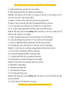 C. Làm phong phú và đa d ng hi ạ n t ệ h c l ự ch s ị . ử D. Tách r i ờ lịch sử v i ớ cu c ộ sống c a con ủ ngư i ờ . Câu 7. K t ế nối lịch sử v i ớ cu c s ộ ống chính là A. sử d ng ụ tri th c ứ l ch ị sử để hi u ể rõ h n ơ nh ng ữ v n ấ đề c a ủ cu c ộ s ng ố hi n ệ t i ạ . B. s d ử ng ụ nh ng ki ữ n t ế h c t ứ rong quá kh đ ứ t ể hay đ i ổ cu c s ộ ng hi ố n t ệ i ạ . C. k t ế n i ố gi a ữ hi n t ệ h c ự l ch s ị v ử i ớ nh n ậ th c l ứ ch s ị b ử ng các ằ ngu n s ồ l ử i u. ệ D. s u t ư ầm và s d ử ng ụ các nguồn s l ử i u đ ệ l ể àm sáng t hi ỏ n t ệ h c l ự ch s ị . ử Câu 8. N i