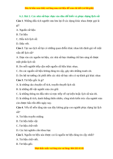 A.2. Bài 2. Các nhà s h ử c d ọ a vào đâu đ ự bi ể t ế và ph c d ụ ng l ự ch s ị ử Câu 1. Nh ng d ữ ấu tích ngư i ờ x a l ư u ư l i ạ các ở d ng khác nhau ạ đư c g ợ i ọ là gì? A. Nguồn s l ử i u ệ B. T l ư iệu C. Dấu tích lịch s . ử D. Dấu v t ế . Câu 2. T i ạ sao lịch s l ử i ạ có nh ng quan đi ữ m