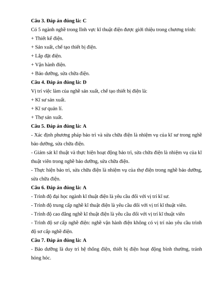 Câu 3. Có mấy ngành nghề trong lĩnh vực kĩ thuật điện được giới thiệu trong chương trình? A. 3. B. 4. C. 5. D. 6.