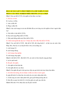 Câu 1. Nửa sau thế kỉ XVII, chủ nghĩa tư bản được xác lập ở A. Hà Lan và Anh. B. I-ta-lia-a và Đức. C. Anh và Bắc Mĩ. D. Pháp và Bắc Mĩ.