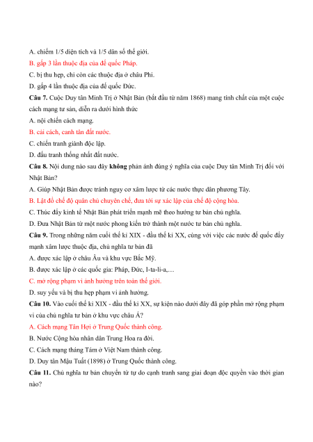 Câu 9. Trong những năm cuối thế kỉ XIX - đầu thế kỉ XX, cùng với việc các nước đế quốc đẩy