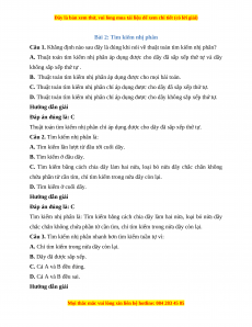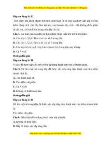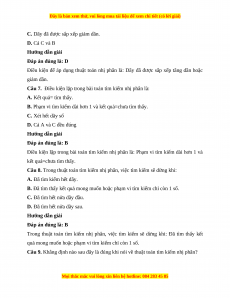 A. Dãy không có thứ tự ta áp dụng thuật toán tìm kiếm nhị phân để: Không bỏ sót